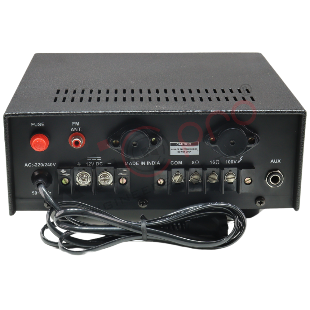 Input Channel : 2 X MIC 0.64 Mv/4.7 K Ohms , 1 X AUX 100 MV/470 K Ohms